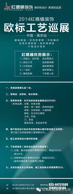 红蚂蚁装饰欧标工艺巡展:展示的是红蚂蚁装饰在施工工艺上面的高标准、高要求、高服务!四大工艺细节展示,专业人员讲解,让我们更深刻的感受到专业的施工团队,精湛的施工技艺!到底什么事欧标工艺呢?小编要卖个关子,到活动现场一探究竟吧!