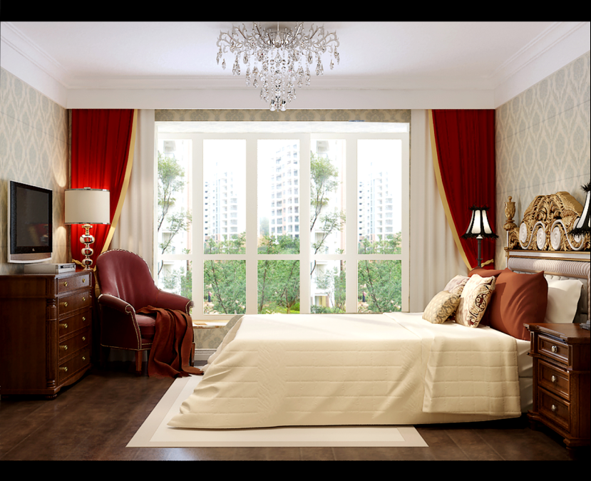 ▲客房与主卧相比,相对素雅、简单,给人以舒适自在的感觉,中国红的窗帘,既让整个房间的色调丰富起来,又给客人凭添了一份明快的好心情。