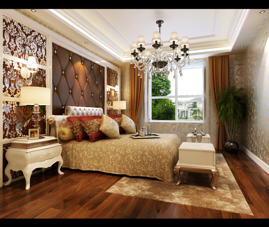 ▲主卧整体给人以沉稳大气的感觉,无论是墙壁、床单的花纹,还是家居的线条,以及木板、窗帘的颜色,都无一不展现出典雅高贵的气息,尽显业主精致的生活品质。