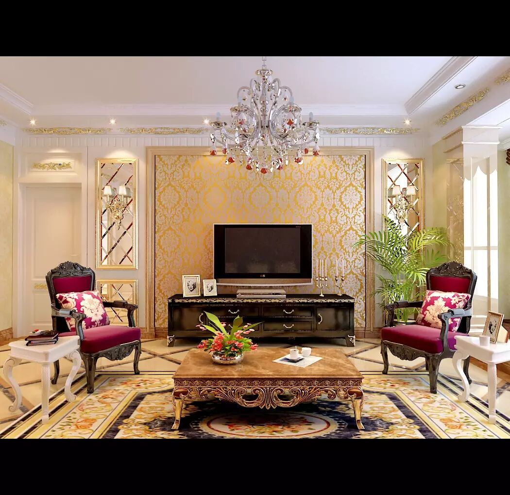 ▲客厅作为待客区域,装修较其它空间更为明快光鲜。居室色彩主调为淡金色及白色。家具为古典弯腿式,丰富的木线变化、奢华的花纹做装饰。完美的营造出华美、富丽的气氛。