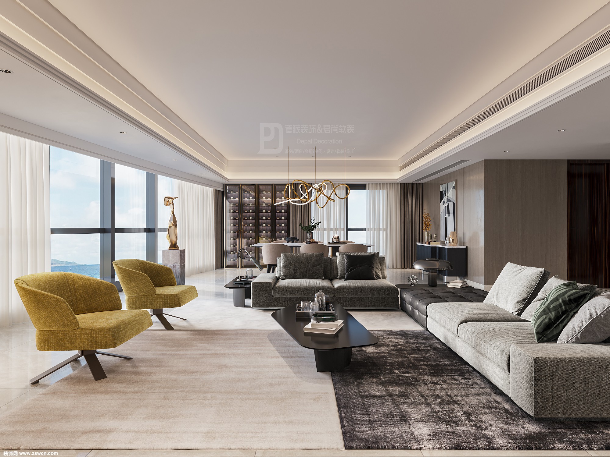 东海国际公寓230m2装修案例-现代轻奢风格-深圳德派装饰设计公司